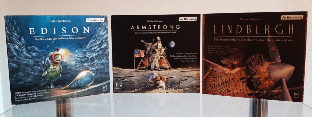 Ich hatte bereits vor einiger Zeit »Einstein – Die fantastische Reise einer Maus durch Raum und Zeit« als Hörbuch gehört und war von der Geschichte absolut begeistert. Als ich diese Hörspielbox sah, wollte ich auch die Geschichten darin unbedingt kennenlernen. Die Abenteuer sind von einer starken Lebendigkeit und erfrischend geschrieben. Torben Kuhlmann weiß, wie er mit Spannung, Humor und einem guten Kern eine aufregende Geschichte aufbaut. Jede steht für sich, spielt jedoch in derselben Welt. In »Edison« werden die beiden vorangegangen Pioniermäuse erwähnt. Ebenso wird in »Lindbergh« auf »Armstrong« angespielt.